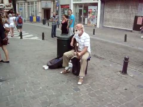 Er legt ne gute Show hin auf der Straße und bekommt Unterstützung von 2 hübschen Mädels! Hoffentlich haben die Leute auch was gespendet!